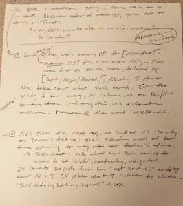 Thus, even a pantser such as I must break down and make some outlines, becoming a plotter, lest nothing be written at all. Below the fold is a pic of the notes I made this afternoon; I was able to lay down about 700 words in the evening, but things are in flux.