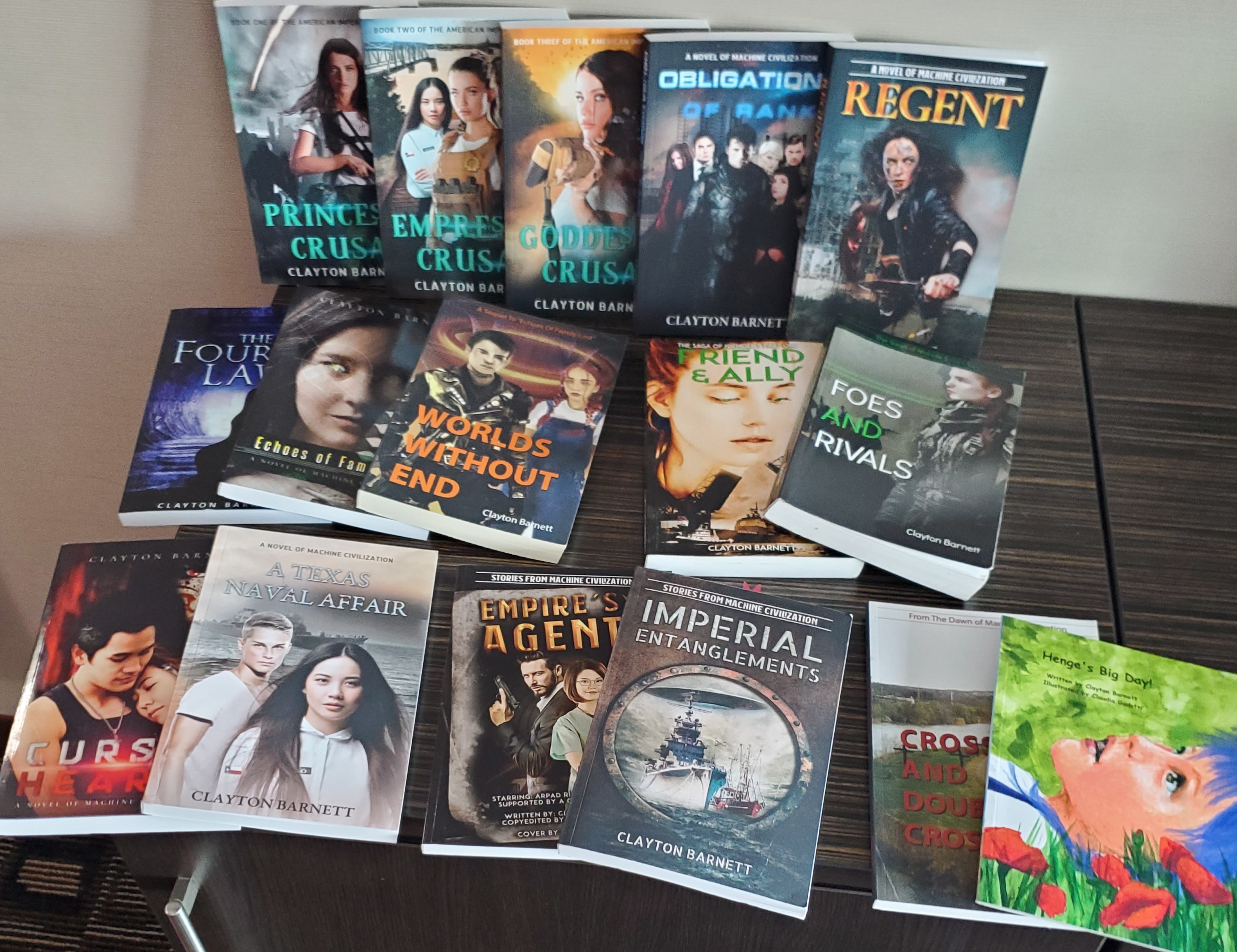 Saturday at 0900, “Increasing Reviews” was something of a recapitulation of the “Publicity & Marketing” I went to, earlier. I’ve done booktours before but never thought about an audio booktour for the one I have. I’ll fix that. That other AI panel (“it’s an expert system!” I shout into the wilderness, unheeded), had about twice as many. There was a brief misunderstanding about panelist seating and I’d like to go on record that Arlan Andrews is rude AF. I’d not much to say, but toward the end, a Mr Hearn asked a two pronged question about macroeconomic impacts and “where’s this all going?” Allow me to retort! I introduced myself after. A short conversation at the Thone led to a need for more whiskey; turned out, 1) his room was next to mine, and 2) he’s got better taste in whiskey than I do. We started talking stories (I had all sixteen of my books on display) which shaded over into book cover design. Clever chap and I want to stay in touch with clever people.