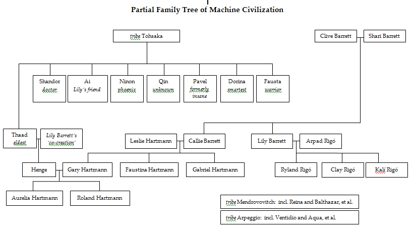 Very ambitious, but also a good start. I could spend thirty minutes on each main character, so was pleased to keep things under control as well as I did. Machine or human, any story is about people. For reference, a stemma, or family tree, is just below.